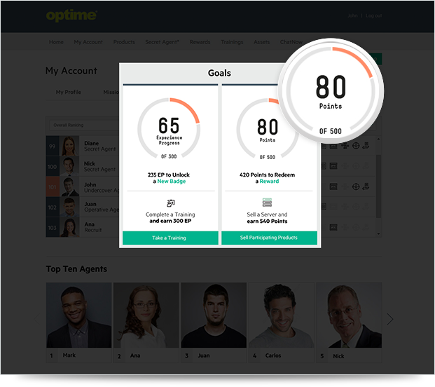 As mecânicas de jogo usadas nas nossas plataformas de engajamento servem para promover comunidades profissionais, ao fornecer aos usuários o senso de trabalho em equipe. Os rep vendas que são usuários dessas plataformas podem interagir em um espaço onde eles aumentam sua experiência e a compartilham com seus pares.